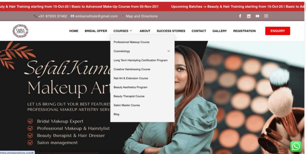 This project was created for a makeup artist business that wanted a clean and modern online presence. The main idea was not just to build a beautiful website, but to create a website that can actually help the business get real leads, calls, and WhatsApp enquiries.