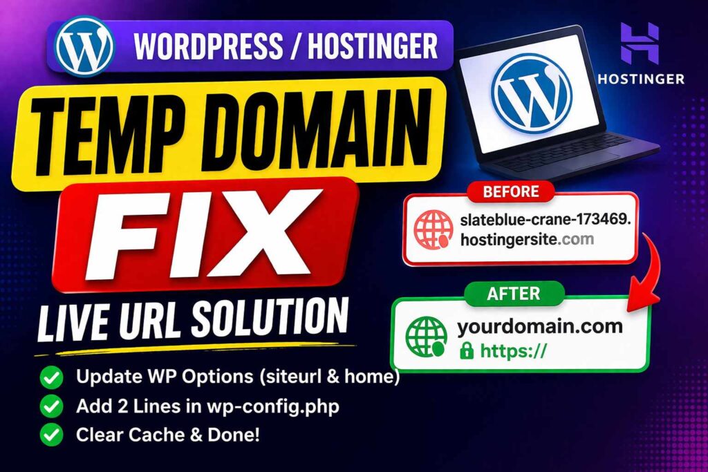 If your WordPress website is still opening the temporary domain even after connecting the main domain, don’t worry — this usually happens because WordPress is still using the old site URL.
